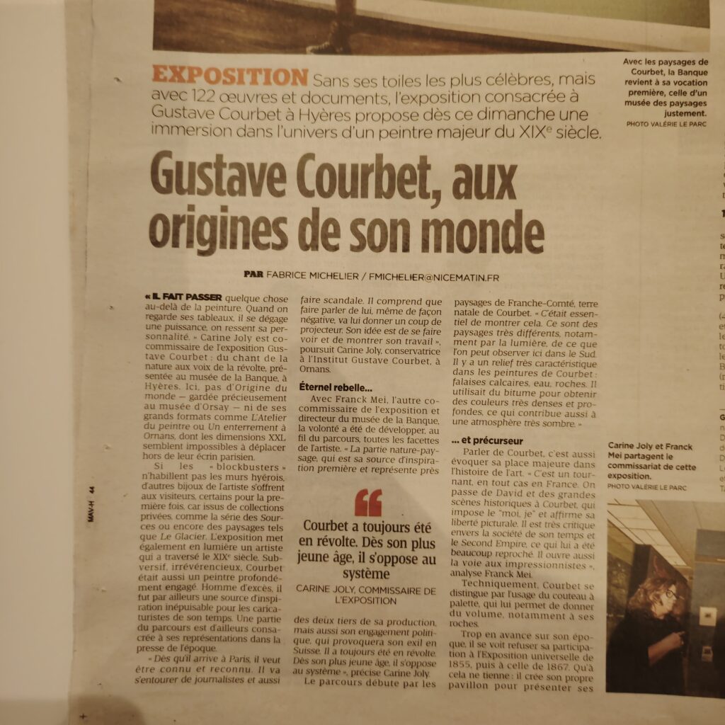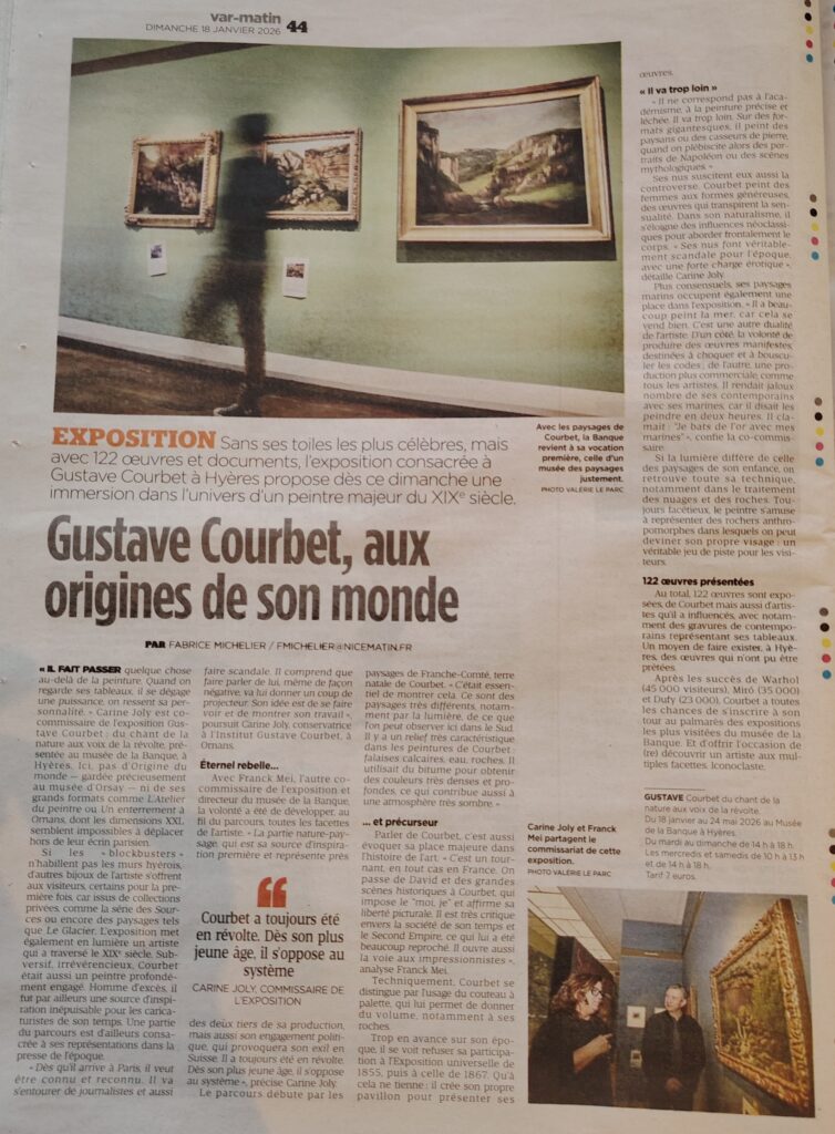 C’est l’exposition événement du moment dans le Var titre Var matin ce dimanche 18 janvier, une pleine page pour cette exposition fruit d’une partenariat entre l’Institut Gustave Courbet et le Ville de Hyères